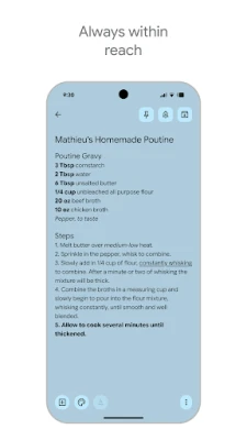 日々のひらめきや大切な情報を見逃さない「Google Keep」で、あなたのアイデアを瞬時に捉え、整理しましょう。頭に浮かんだことは、テキストメモ、チェックリスト、写真として気軽に記録。急いでいる時は音声メモでサッと録音すれば、Google Keepが自動で文字に変換し、後から簡単に検索できます。スマートフォンやタブレットのウィジェット、Wear OSデバイスのタイルやウォッチフェイス機能を使えば、いつでもどこでも、思いついたその場で情報を残すことが可能です。