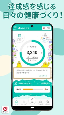 dヘルスケアは、歩数や体重記録で健康管理を助け、dポイントもたまるアプリ。歩数計、ミッション、グラフでの可視化、多様な機器連携に対応。急な体調不良時もオンライン診療で、あなたの健康を総合的にサポートします。