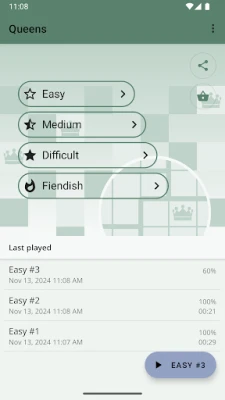 Queensは、オブジェクト配置と二値決定の要素を巧みに組み合わせた、ユニークなロジックパズルです。星を配置する人気パズル「Two Not Touch」(スターバトル)に非常に近いコンセプトでありながら、数独とマインスイーパーの魅力的な融合と評されることもあります。難易度が高いと感じてもご安心ください。いつでも途中までの解答の正誤を確認できる機能や、無制限かつ詳細な解説付きのヒント機能が、あなたの思考をサポートします。さらに、オフラインでのプレイはもちろん、目に優しいダークモードや複数の美しいカラーテーマで、自分好みの環境をカスタマイズできます。
