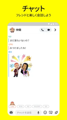 Snapchatは、友達や家族と「今この瞬間」を共有できる、活気に満ちた楽しいコミュニケーションアプリです。写真や動画を通じて、リアルタイムの出来事やあなたの気持ちを自由に表現し、大切な人たちと心温まる思い出を分かち合えます。日常に彩りを加え、より豊かな交流で、特別なつながりを築くお手伝いをします。